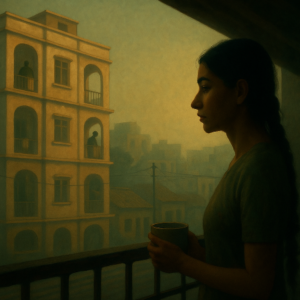 The warm yellow light from the room inside was the only source of illumination on the balcony where Rishika stood. The view of the vast